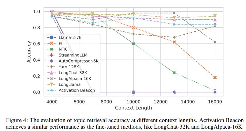Activation Beacon is a plug-and-play module for large language models that allows them to process longer contexts with a limited context window, while preserving their…